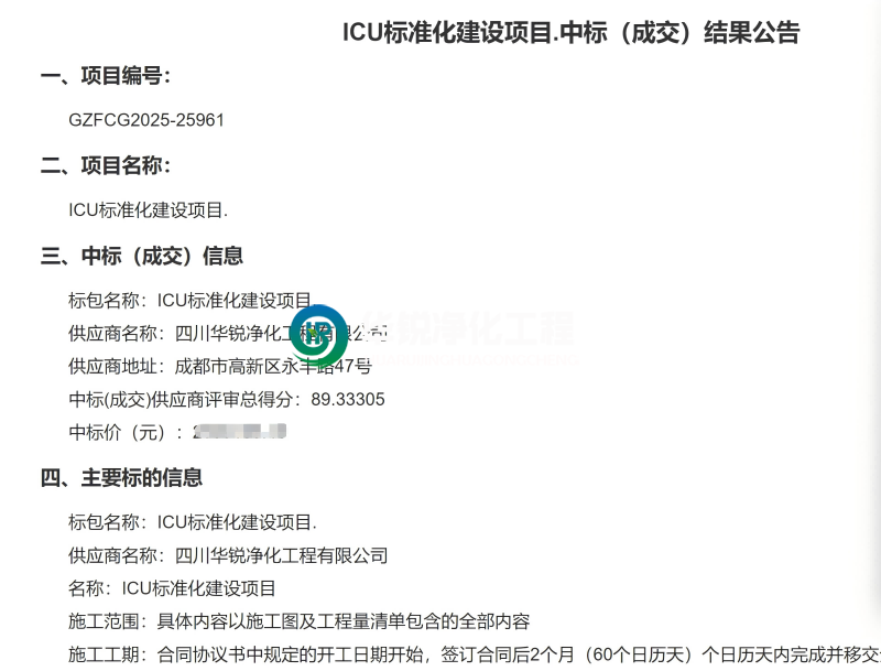 2025年5月6日 ,國內醫療凈化工程領域的領先企業華銳凈化工程有限公司(以下簡稱“華銳凈化”)成功中標山南市藏醫醫院ICU標準化建設項目。該項目標志著華銳凈化在高原地區醫療凈化領域的技術實力和服務能力再獲認可,同時也將為山南市及周邊地區患者提供更安全、高效的危重癥救治環境。